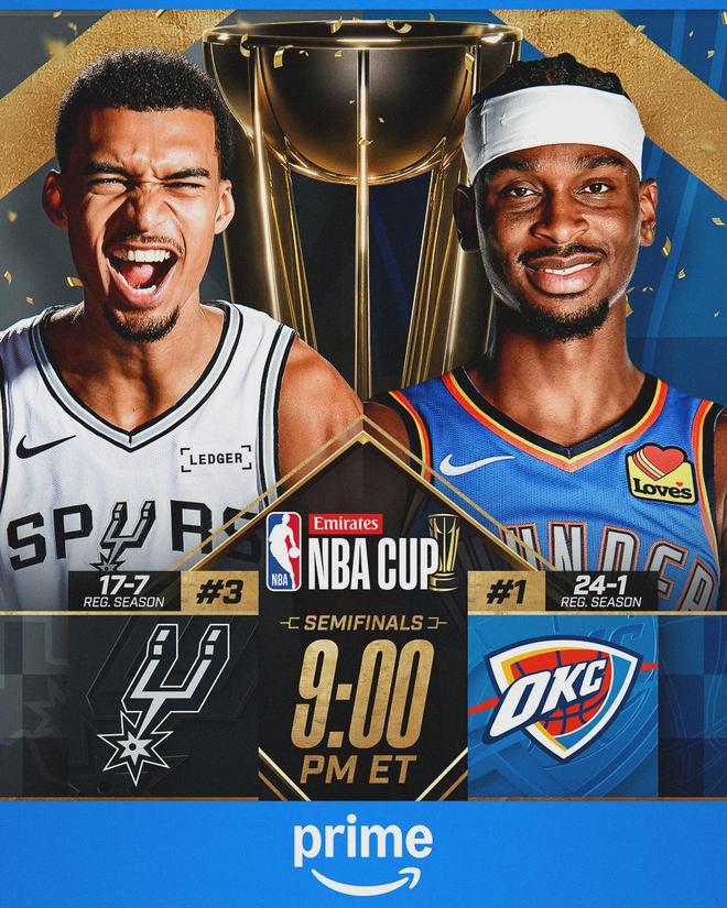 掀翻联盟第1,NBA杯爆大冷门!文班复出22+9,雷霆出局马刺进决赛
