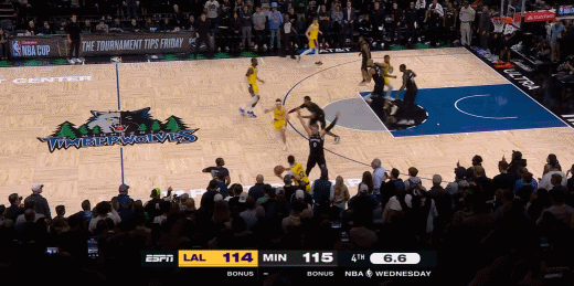 比赛最后6.6秒,落后1分的湖人命悬一线, 里夫斯接球后略一停顿,化身一道黄色闪电, 利刃般刺穿人墙缝隙 !电光石火间,他腾空而起,面对遮天蔽日的巨掌,手腕轻抖如拈花——