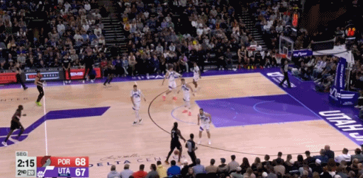 杨瀚森上场后,爵士进攻端很明显就针对 杨瀚森发起了各种猛攻