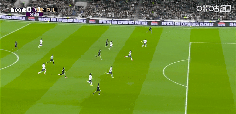第4分钟,泰特禁区右路抽射变线破门,富勒姆1-0热刺
