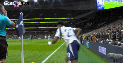 第59分钟,库杜斯禁区右路得球爆射破门,热刺1-2富勒姆